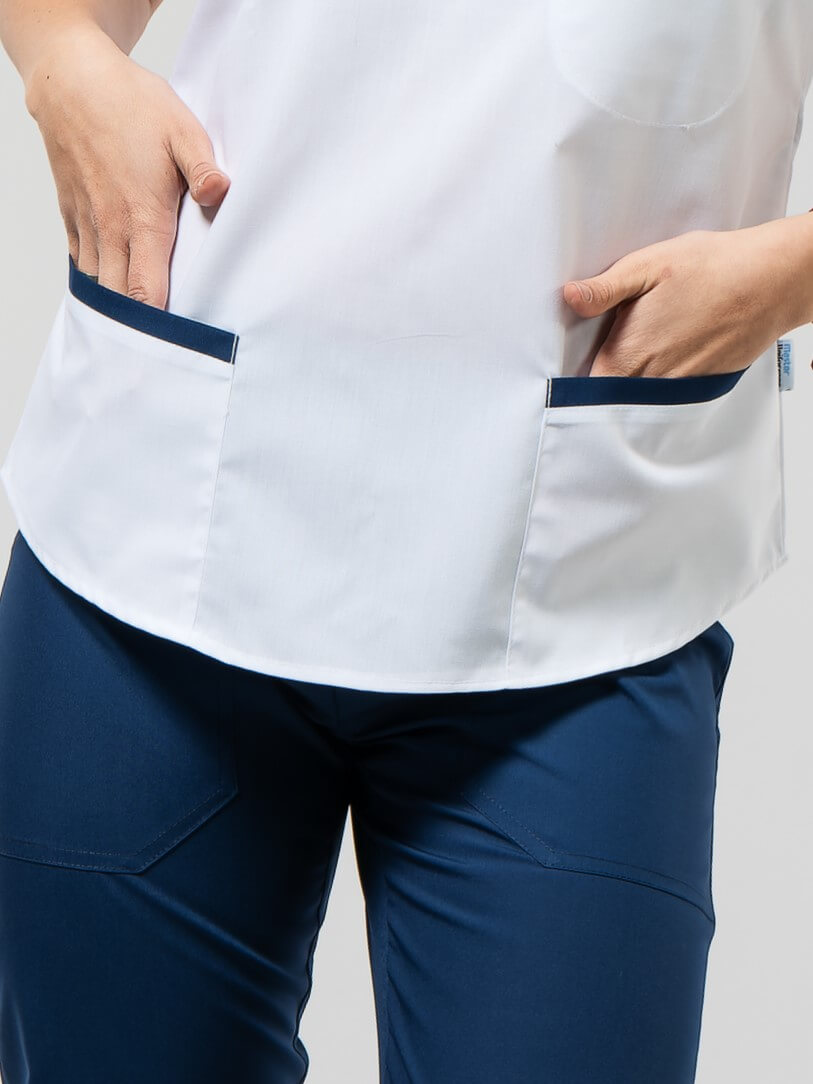 Color: Chaqueta blanco INTA 100 anticloro y azul marino INTA 490 anticloro ; Pantalón azul marino INTA 490 anticloro