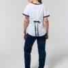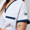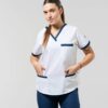 - Chaqueta: escote V, con detalles a contratono en cuello, mangas y bolsillos. Posee tres bolsillos delanteros súper amplios (Uno superior y dos inferiores) ideales para que lleves todos tus accesorios. En la parte posterior cuenta con lazo de entalle para que puedas regular la chaqueta a gusto.