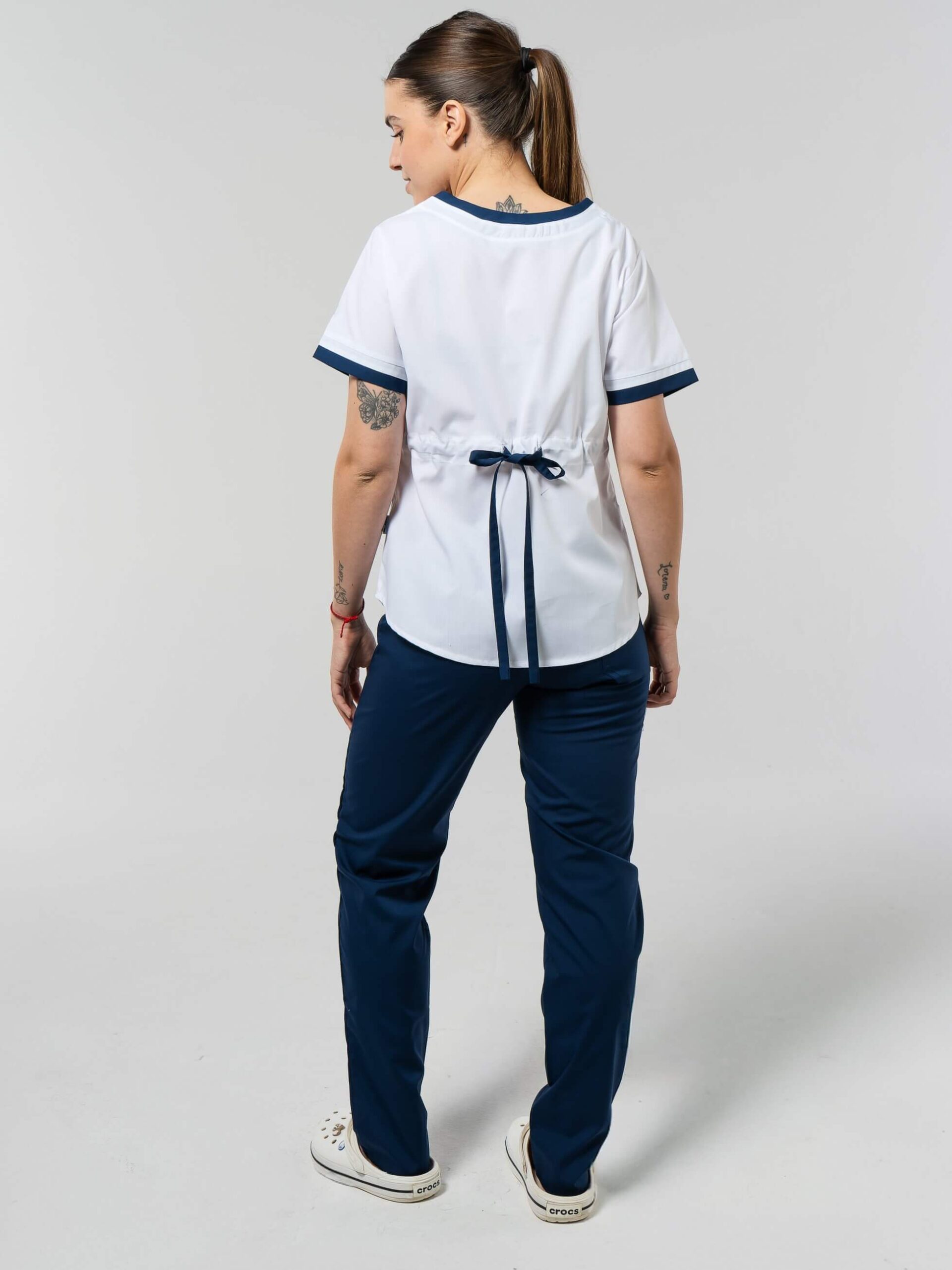 Composición de la chaqueta y pantalón – Tela Arciel INTA (65% Poliester, 35% Viscosa).